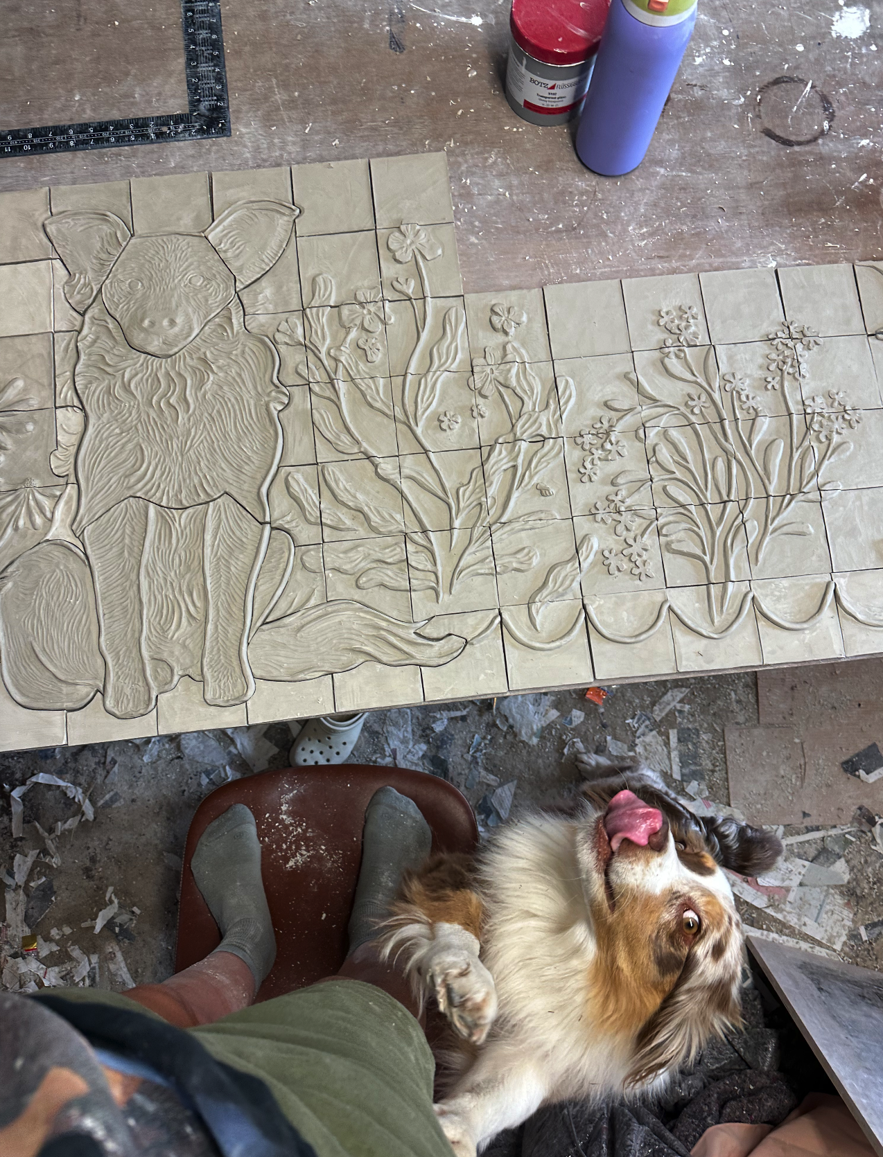 Réalisations > Les Poujades Les PoujadesLes Poujades, Lot (France)Réalisation d’une crédence en grès beige, émaillé.